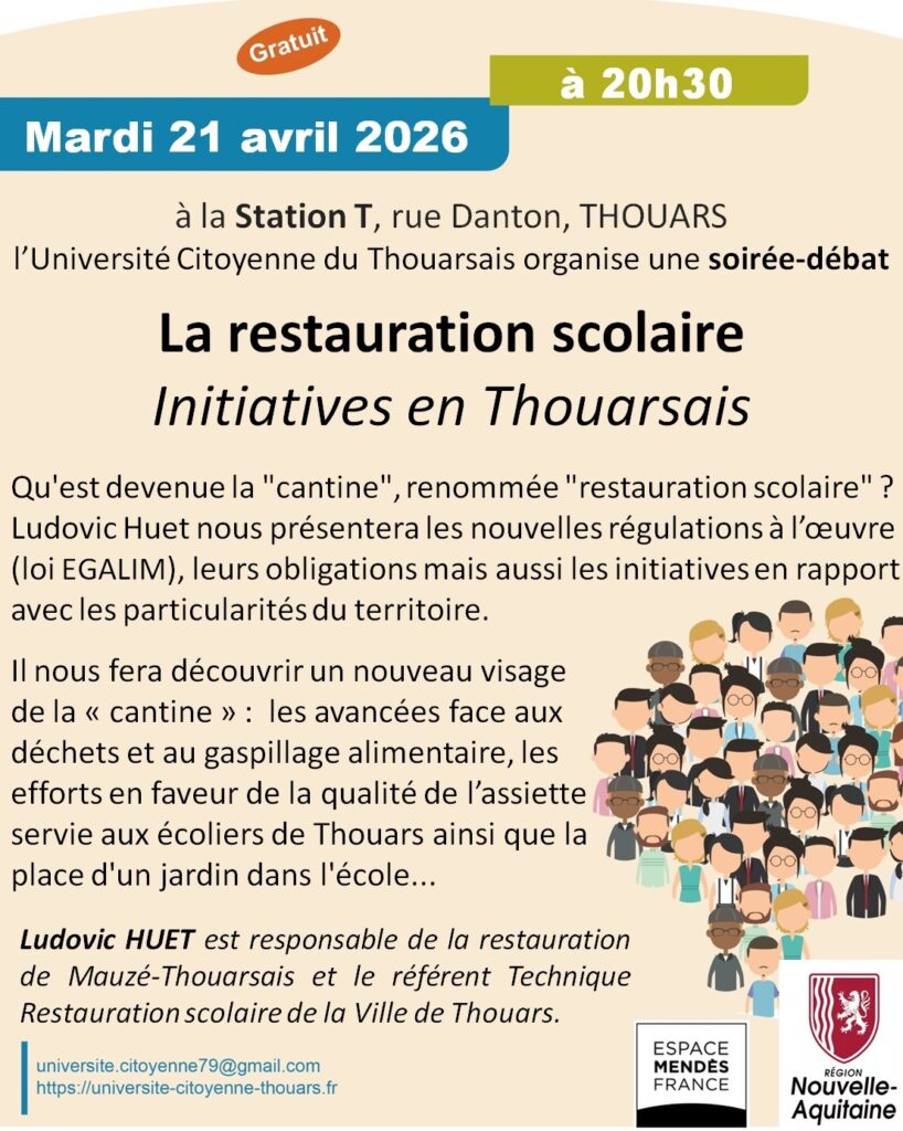 Attention : l’Université citoyenne sera accueillie par le Lycée Jean Moulin (salle de conférences) – Thouars